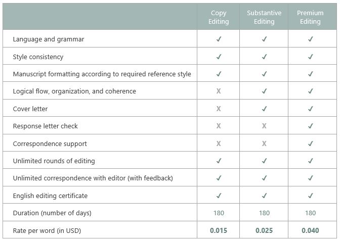 Depending on your needs, you can choose a specific type of Academic Editing service: Copy Editing, Substantive Editing, or Premium Editing.